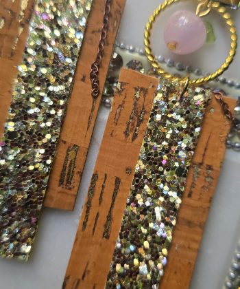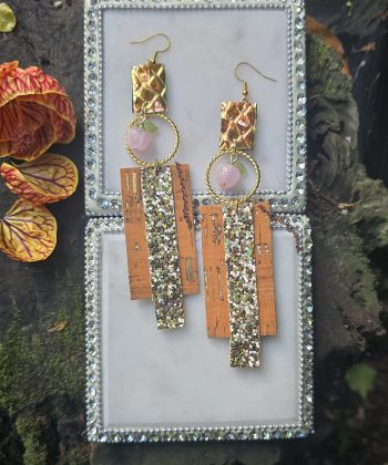 Length 5.5 inches Black sparkly earrings with a hint of gold. Dress up your black outfit with this cute pair. Add a touch of elegance and bring shine to your look. Handmade in San Francisco