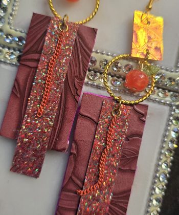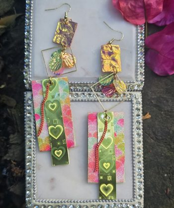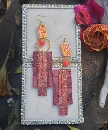 Length 5.5 inches Fun playful bright cherry iridescent earrings with a hint of orange. Add a splash of color to your outfit. You’ll get a lot of compliments with this adorable pair. Must add to your earrings collection. Handmade in San Francisco