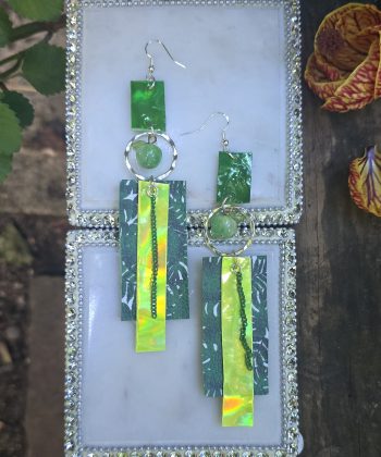 Length 4.5 inches Be fabulous eith these vibrant freen and lime artful earrings. One of a kind, made to turn heads. Handmade in San Francisco