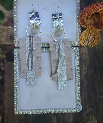 Length 4.5 inches Perfect neutral sparkly lightweight earrings to wear all year round. Wear your hair up or let loose, these stunners are meant to turn heads. Handmade in San Francisco