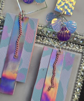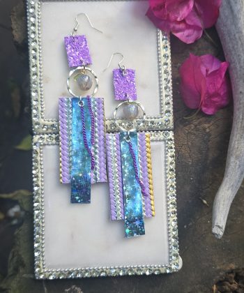 Length 4.5 inches Add artful elegance to any look with the pretty iridescent pastel earrings. Handmade in San Francisco