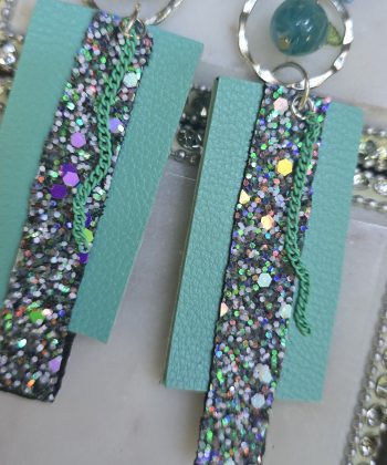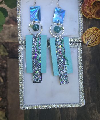 Length 4.5 inches Add artful elegance to any look. Dress up or go full glam with these one of a kind glittery earrings. Handmade in San Francisco