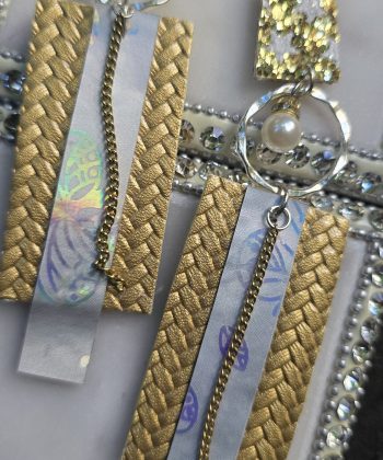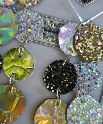 Length 5 inches Fun gold and silver sparkly earrings to wear on a special occasion. Very playful design adds shine to any outfit. Handmade in San Francisco