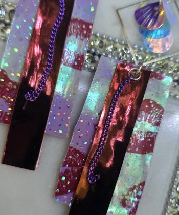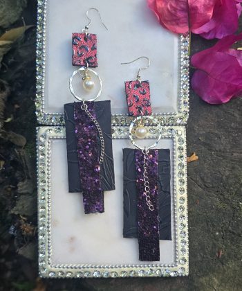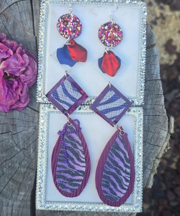 Length 6.5 inches The combination of purple and red vibrant colors can be worn on a romantic night out. Long lightweight statement earrings to brighten your outfit. Handmade in San Francisco
