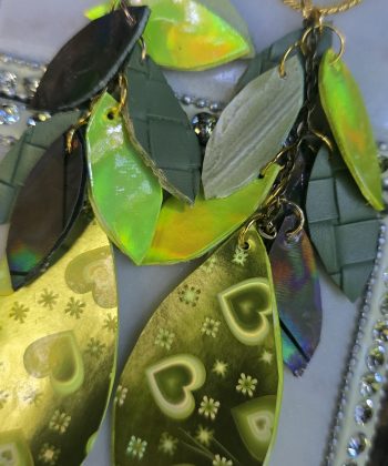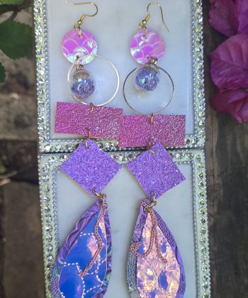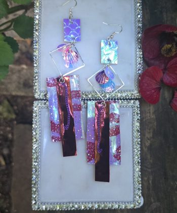 Length 5.5 inches Add shine and color with these iridescent pink and green cute modern dangle earrings. You’ll get many compliments when you wear these. Handmade in San Francisco