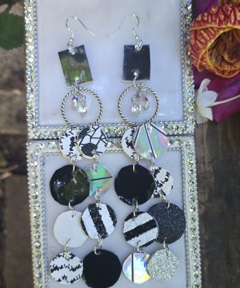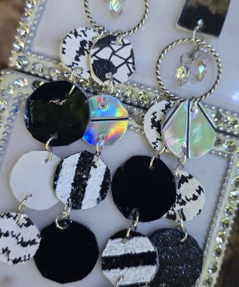 Length 5 inches Every girl needs a fun black and white pair of earrings. Perfect for everyday wear. Handmade in San Francisco