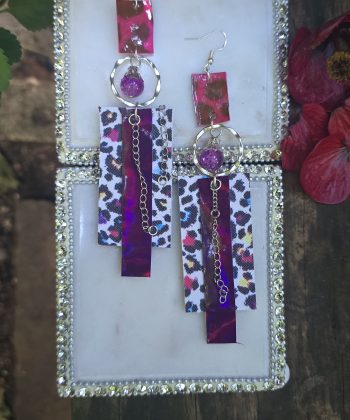 Length 4.5 inches Fun colorful animal print earrings to spice up your outfit. Handmade in San Francisco