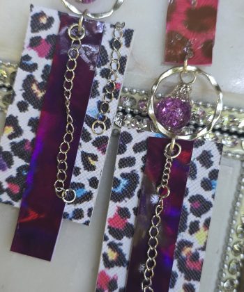 Length 8 inches Make a bold statement everywhere you go with these animal print colorful earrings. Pair with your black outfit or jeans and a cute top. Made in San Francisco