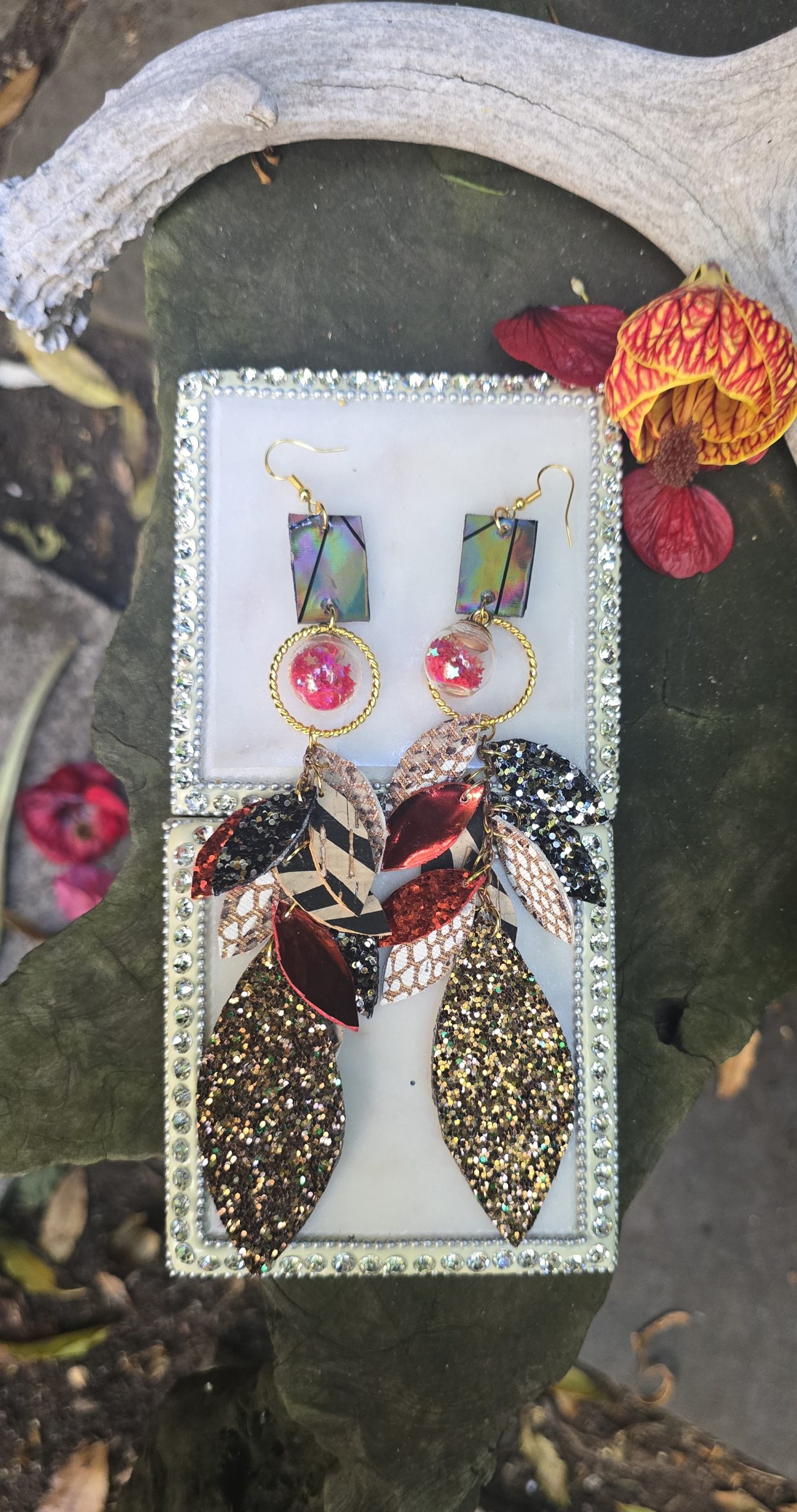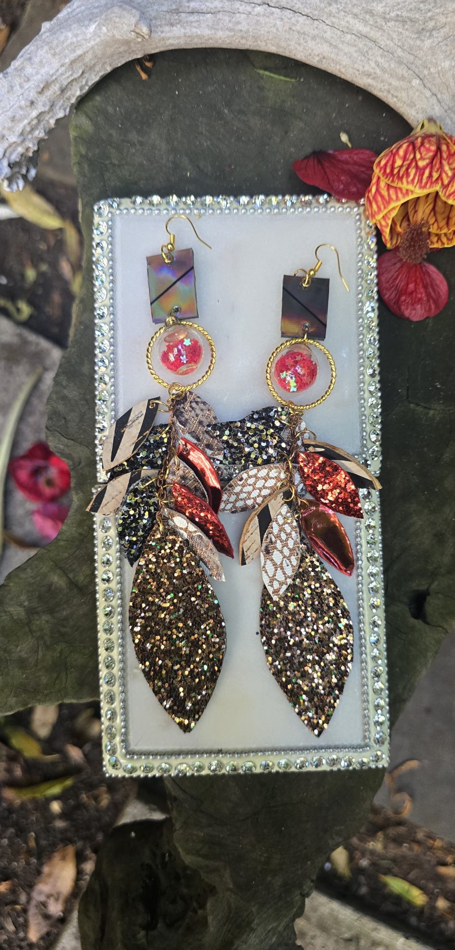 Brown with hints of red is the perfect addition to your jewelry collection. They will easily match many outfits. Don’t forget the red lipstick.