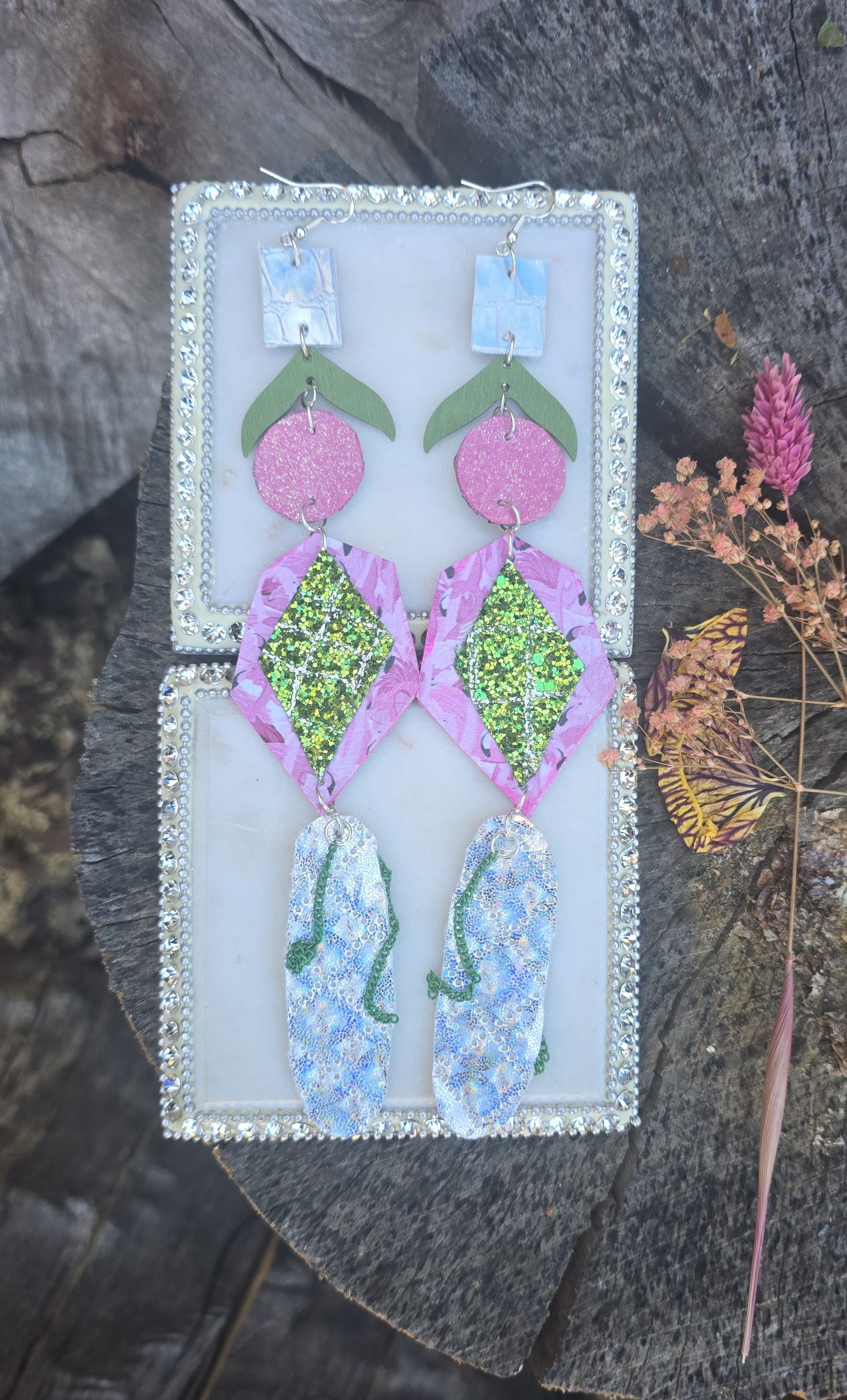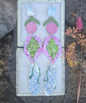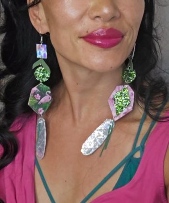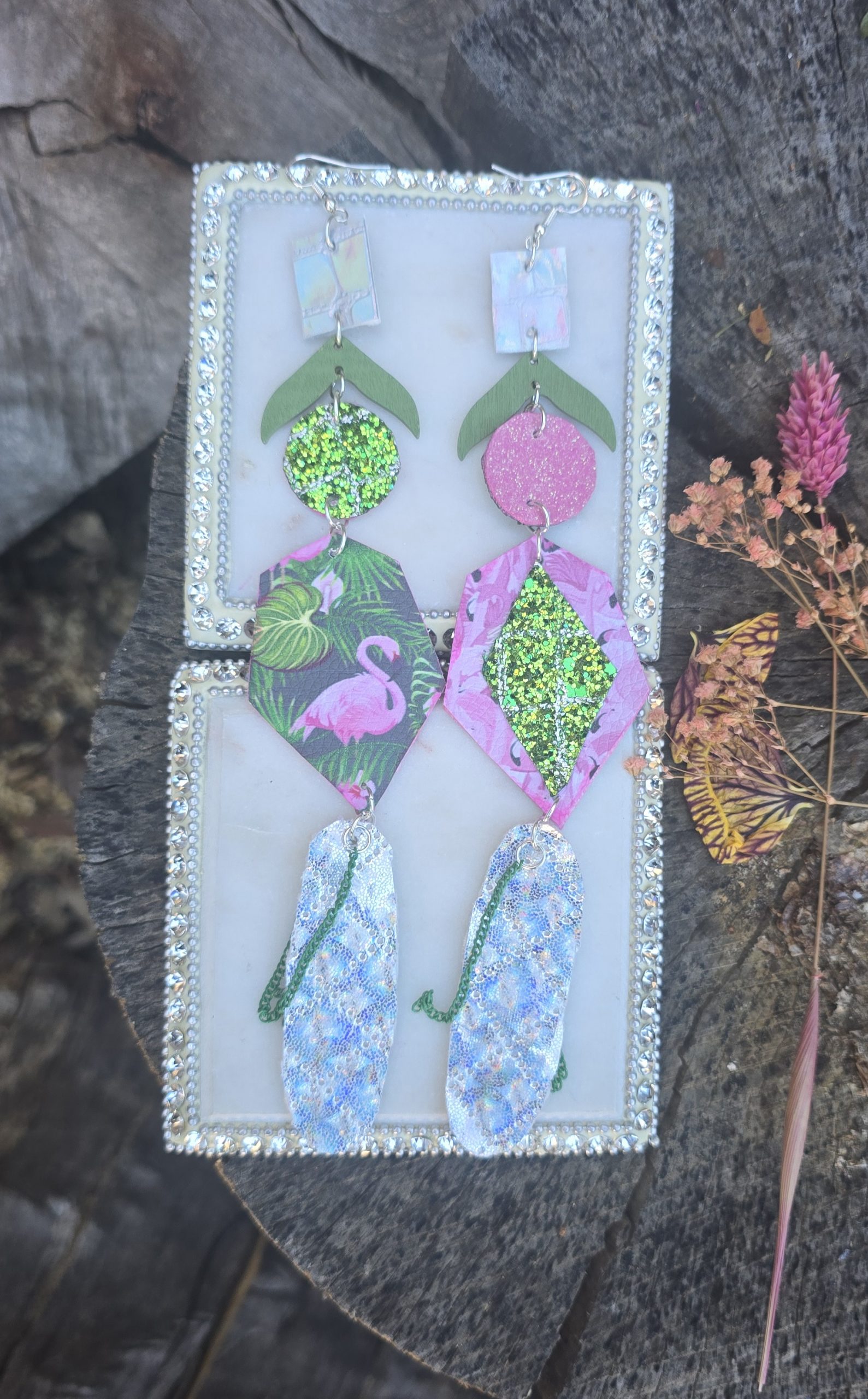 Be the first to review “Carmen – Geometric Pink Green Flamingo Earrings” Cancel reply
