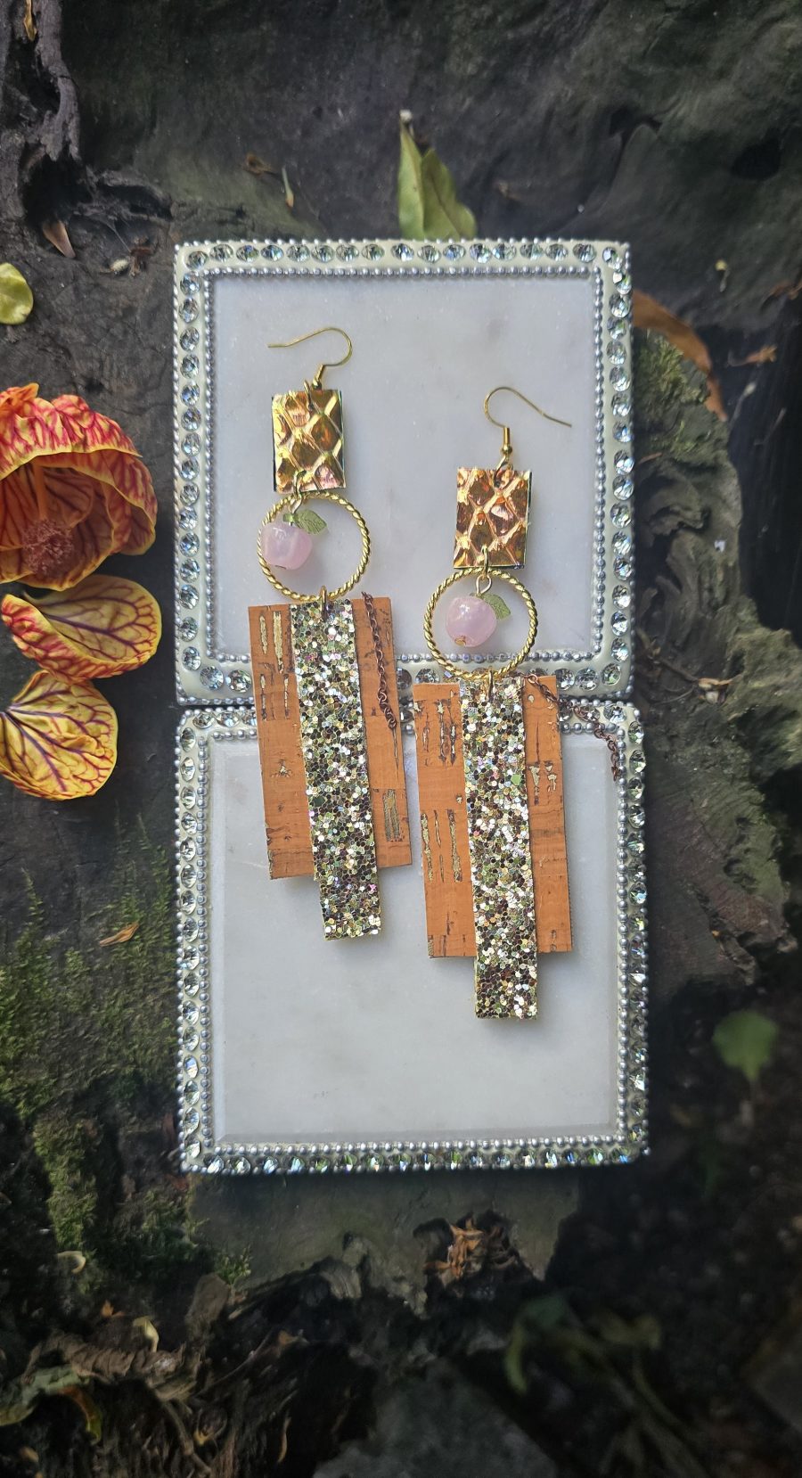 Lightweight and easy to wear all day. These orange glittery earrings are meant to turn heads.