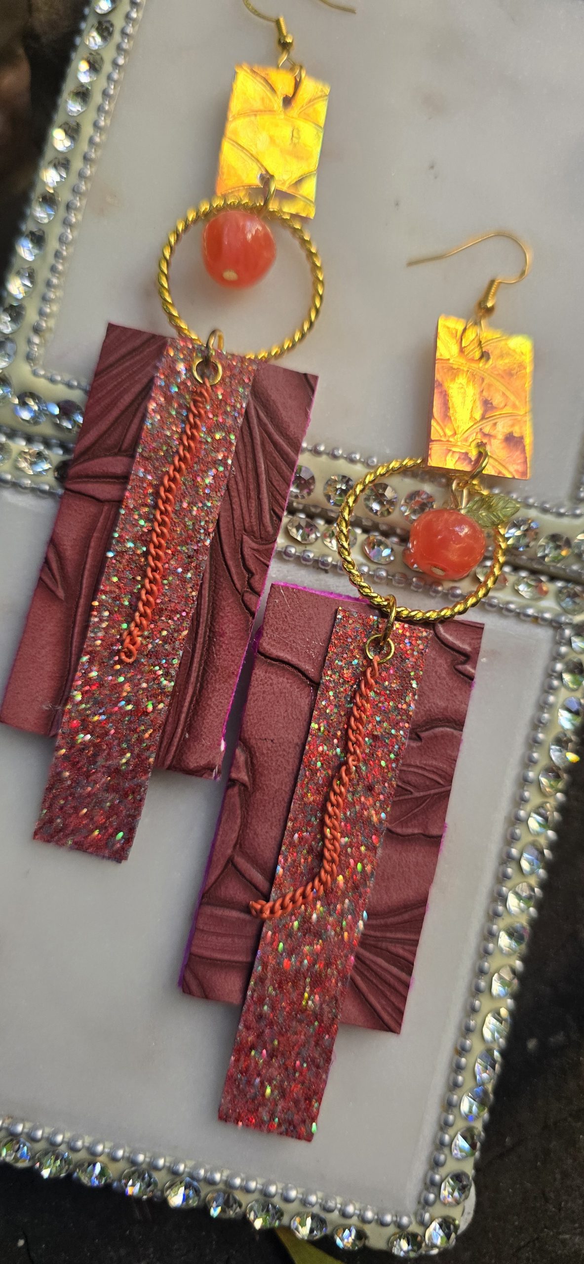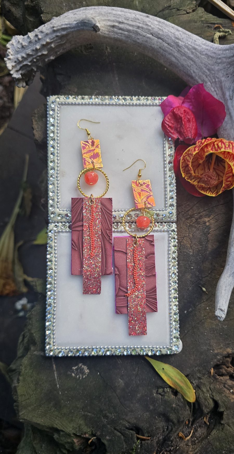 Clarissa – Sparkly Orange Rectangle Dangle Earrings