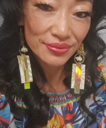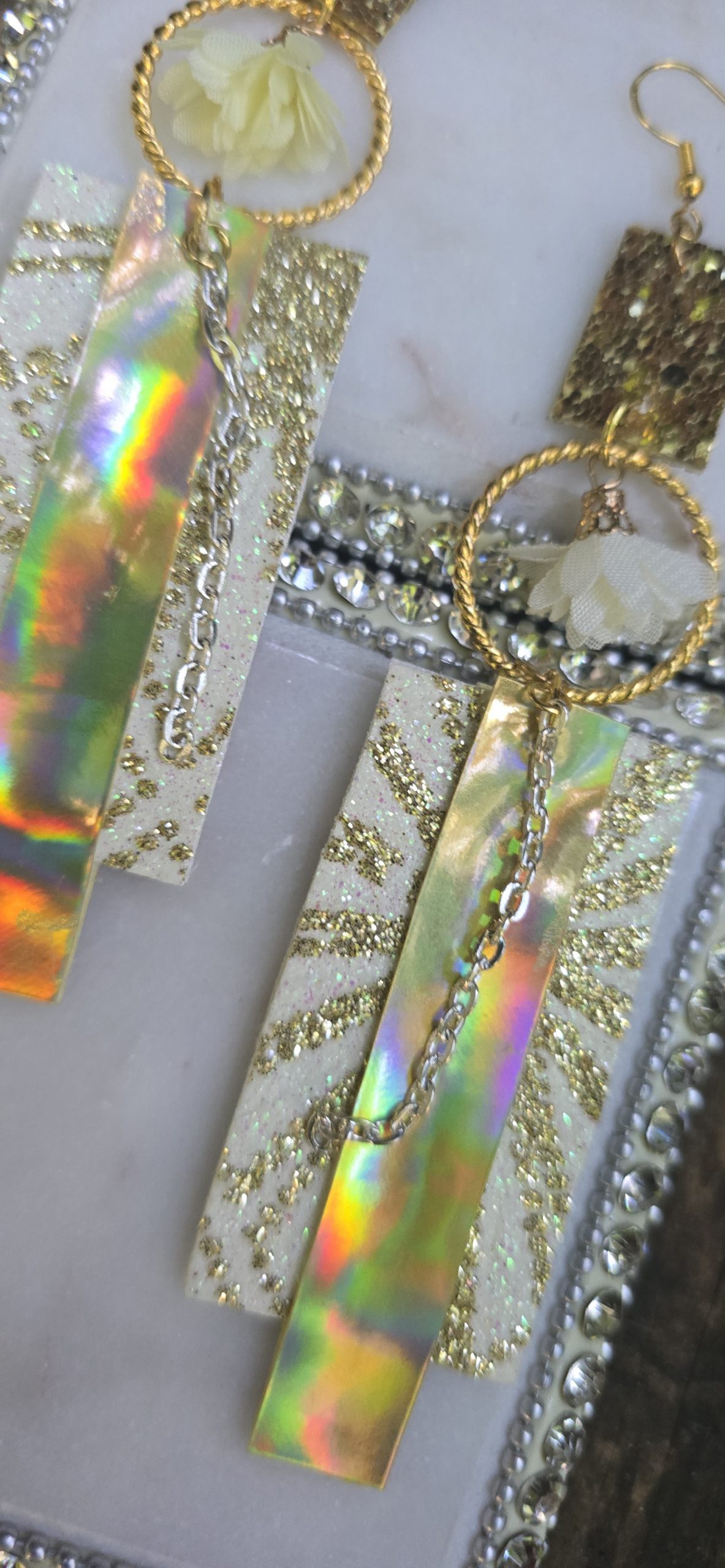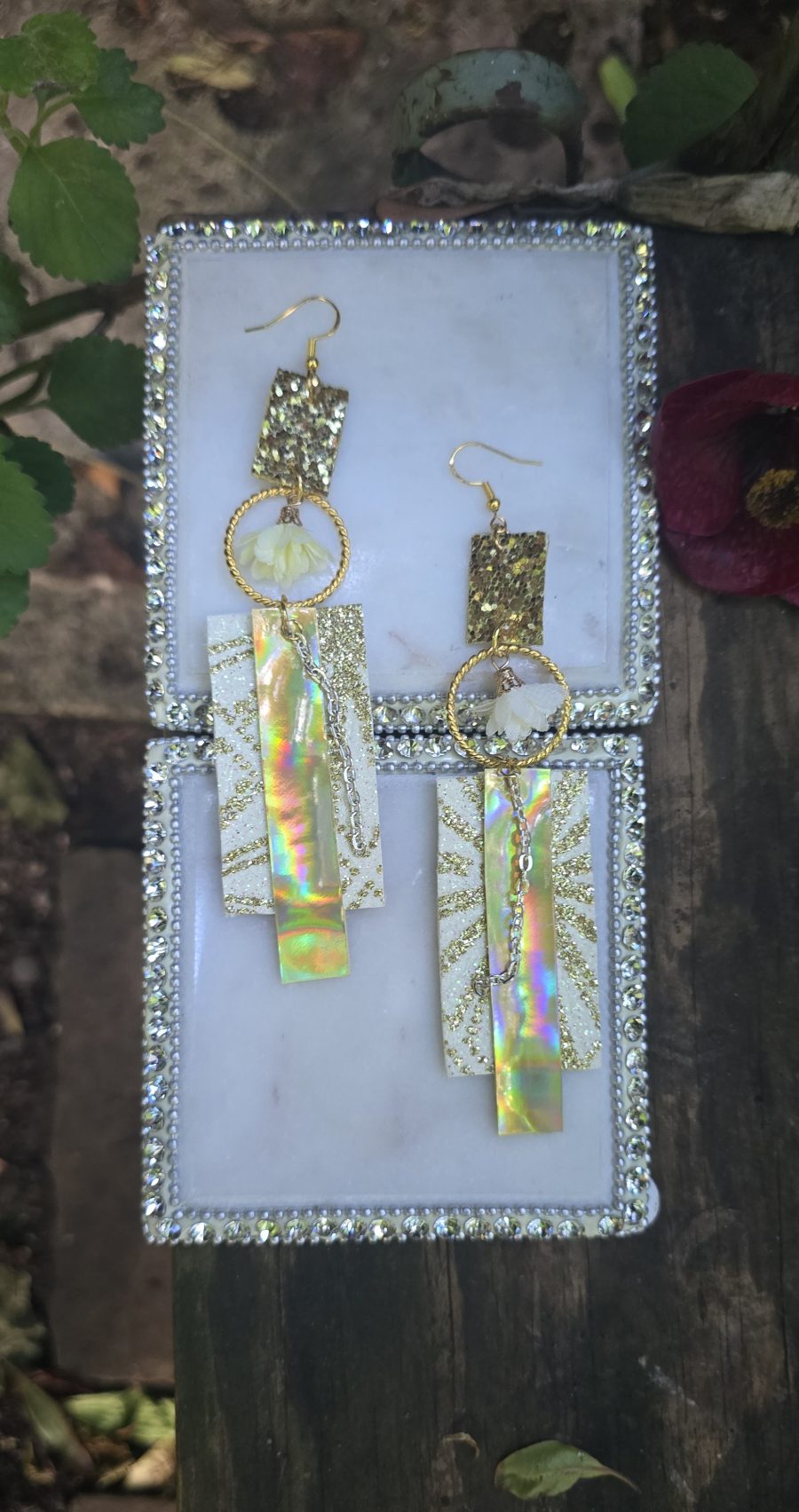 Whether you’re dressing up casual or going full glam, this modern take on dangle earring trend is the perfect addition to your jewelry collection. Beautiful white and gold sparkly earrings.
