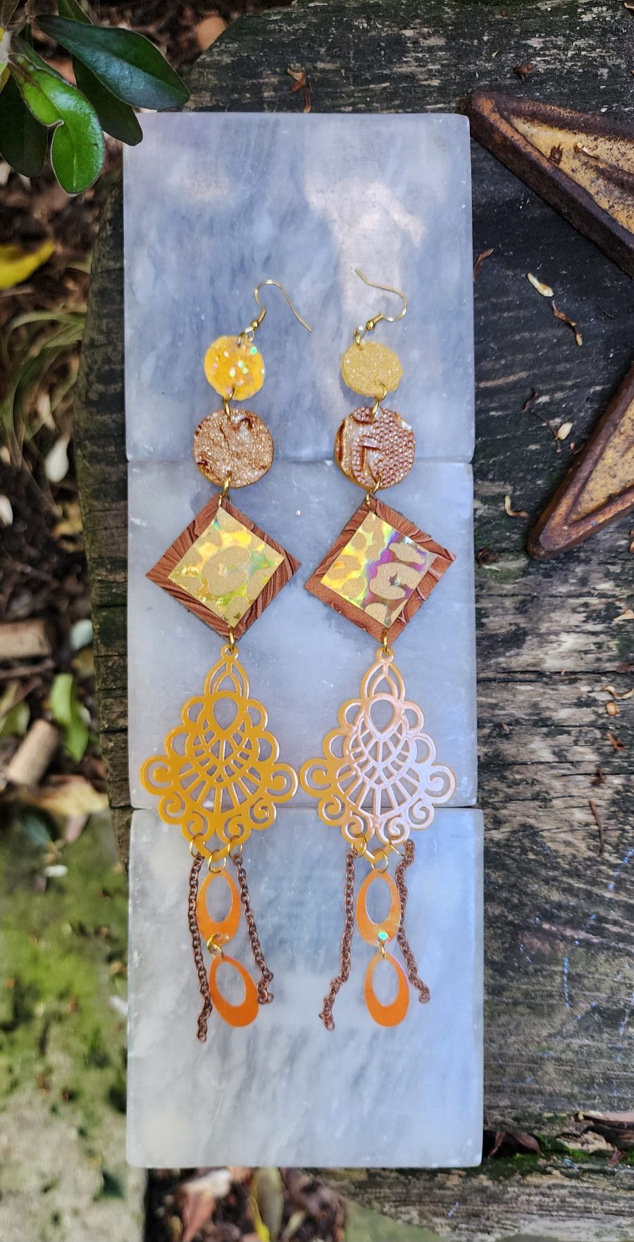 Add spice and shine with these one of a kind shimmery star earrings. Wear on a special occasion. These earrings are meant to turn heads.